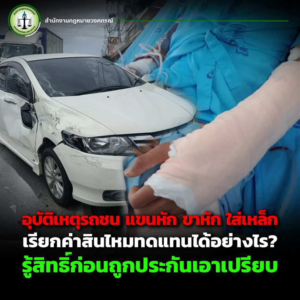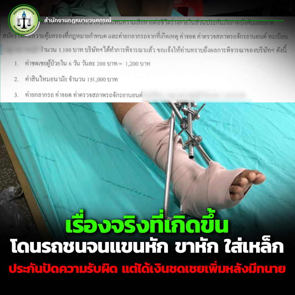 เรื่องจริงที่เกิดขึ้น : โดนรถชนจนแขนหัก ขาหัก ใส่เหล็กประกันปัดความรับผิด แต่ได้เงินชดเชยเพิ่มหลังมีทนาย