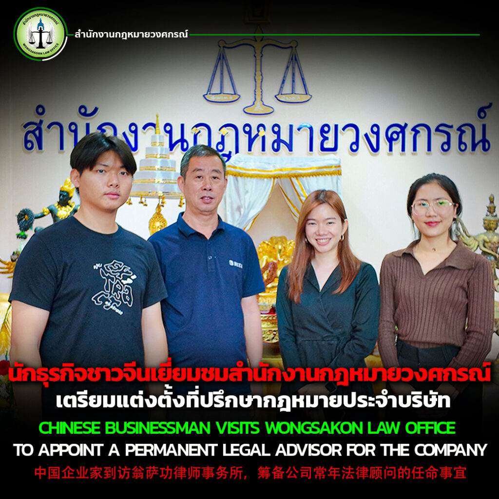 On March 21, 2025, a Chinese businessman visited WongsaKorn Law Office to evaluate the appointment of a legal advisor for Beta Package Products (Thailand) Co., Ltd., a company engaged in the production of packaging for export throughout Asia and Europe in Thailand.
