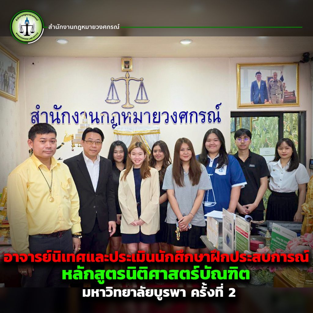วันที่ 24 กุมภาพันธ์ 2568 อาจารย์ จิรวัธ ศิริศักดิ์สมบูรณ์ อาจารย์ประจำภาควิชานิติศาสตร์ คณะรัฐศาสตร์และนิติศาสตร์ มหาวิทยาลัยบูรพา ได้เดินทางมาเยี่ยมนิเทศและประเมินผลการฝึกประสบการณ์วิชาชีพของนักศึกษากฎหมายที่กำลังฝึกงาน ณ สำนักงานกฎหมายวงศกรณ์
