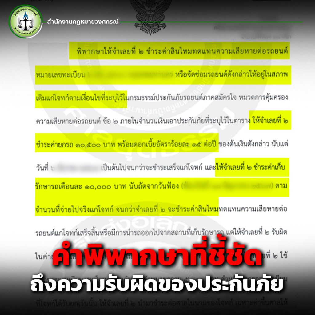 3.ชำระค่าเก็บรักษารถ เดือนละ 10,000 บาท นับจากวันฟ้อง (18 มิถุนายน 2567) จนกว่าจะชำระค่าสินไหมครบ หรือมีการนำรถออกจากสถานที่เก็บรักษา