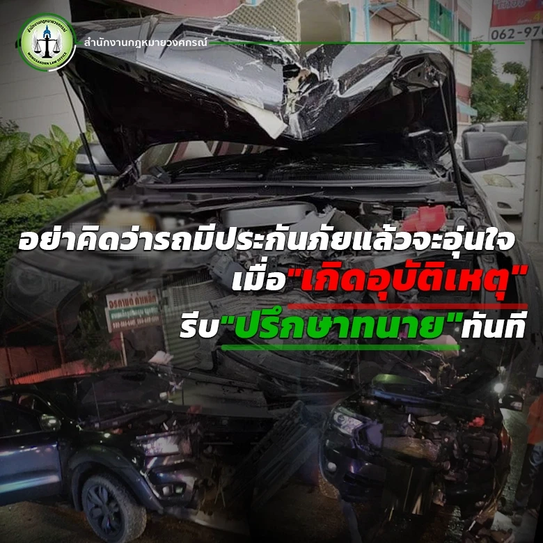 อย่าคิดว่ารถมีประกันภัยแล้วจะอุ่นใจ เมื่อเกิดอุบัติเหตุรีบปรึกษาทนายทันที