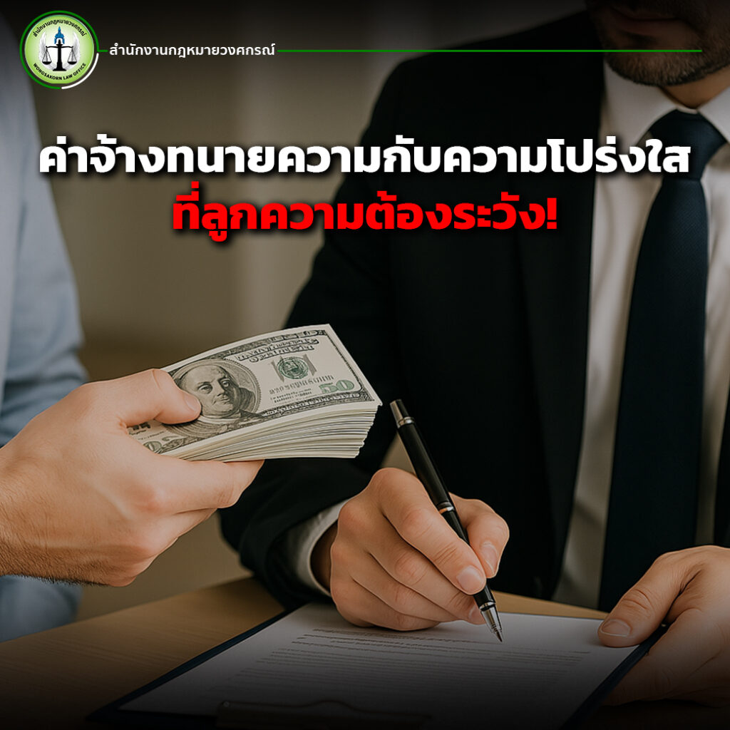 เรื่องของค่าจ้างทนายเป็นสิ่งสำคัญที่ลูกความต้องใส่ใจ และเลือกทนายความที่โปร่งใส ไม่ใช้ภาษาคลุมเครือเพื่อเรียกเก็บค่าจ้างเพิ่มเติม “ทนายเหลี่ยมเรียกค่าจ้างถึงที่สุด” เป็นตัวอย่างของพฤติกรรมที่ลูกความต้องระวัง และควรเลือกใช้บริการจากทนายที่มีจรรยาบรรณหากคุณต้องการที่ปรึกษาทางกฎหมายที่ไว้ใจได้ สำนักงานกฎหมายวงศกรณ์ พร้อมให้บริการอย่างมืออาชีพ ปรึกษาเราได้ทันที >>ติดต่อเรา<<