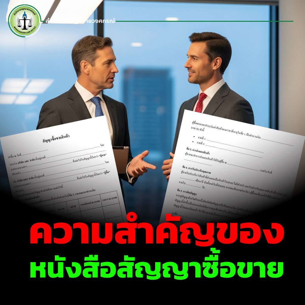 👉 หากคุณต้องการหนังสือสัญญาซื้อขายที่มีผลบังคับตามกฎหมายและคุ้มครองธุรกิจของคุณ ติดต่อ สำนักงานกฎหมายวงศกรณ์ เพื่อรับบริการจากทีมทนายความผู้เชี่ยวชาญได้ทันที