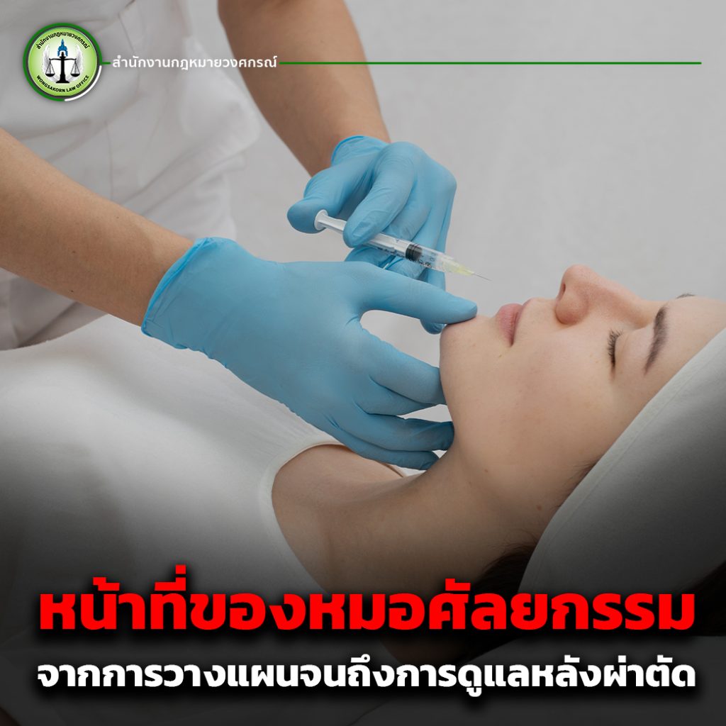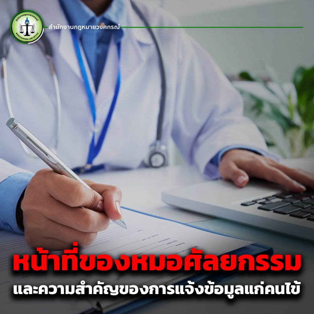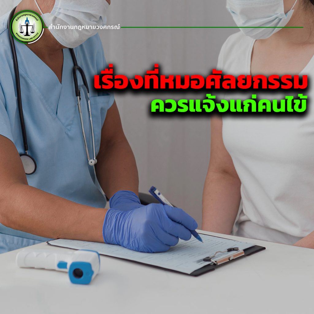 แพทย์มีหน้าที่แจ้งข้อมูลให้คนไข้ทราบถึงรายละเอียดเกี่ยวกับขั้นตอนการผ่าตัด รวมถึงความเสี่ยงและผลกระทบที่อาจเกิดขึ้น เช่น การติดเชื้อ การเกิดรอยแผลเป็น หรือภาวะแทรกซ้อนอื่น ๆ เพื่อให้คนไข้ได้ตัดสินใจอย่างมีข้อมูลครบถ้วน