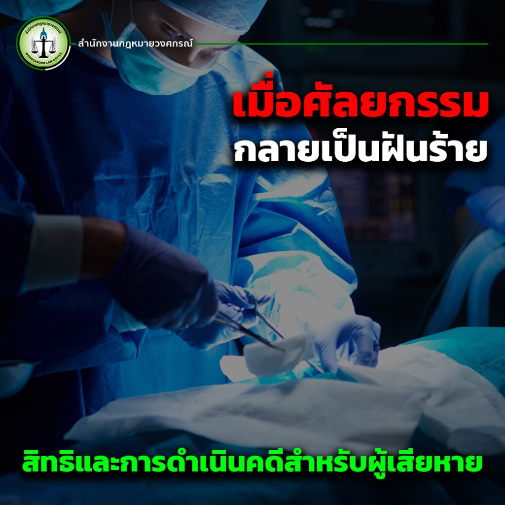 ในบทความนี้จากสำนักงานกฎหมายวงศกรณ์ จะมาพูดถึงปัญหาที่ผู้เสียหายจากการศัลยกรรมต้องเผชิญ พร้อมทั้งแนวทางในการใช้สิทธิ์ทางกฎหมายและบทบาทของทนายความในการให้บริการทางกฎหมายฟ้องร้องดำเนินคดี