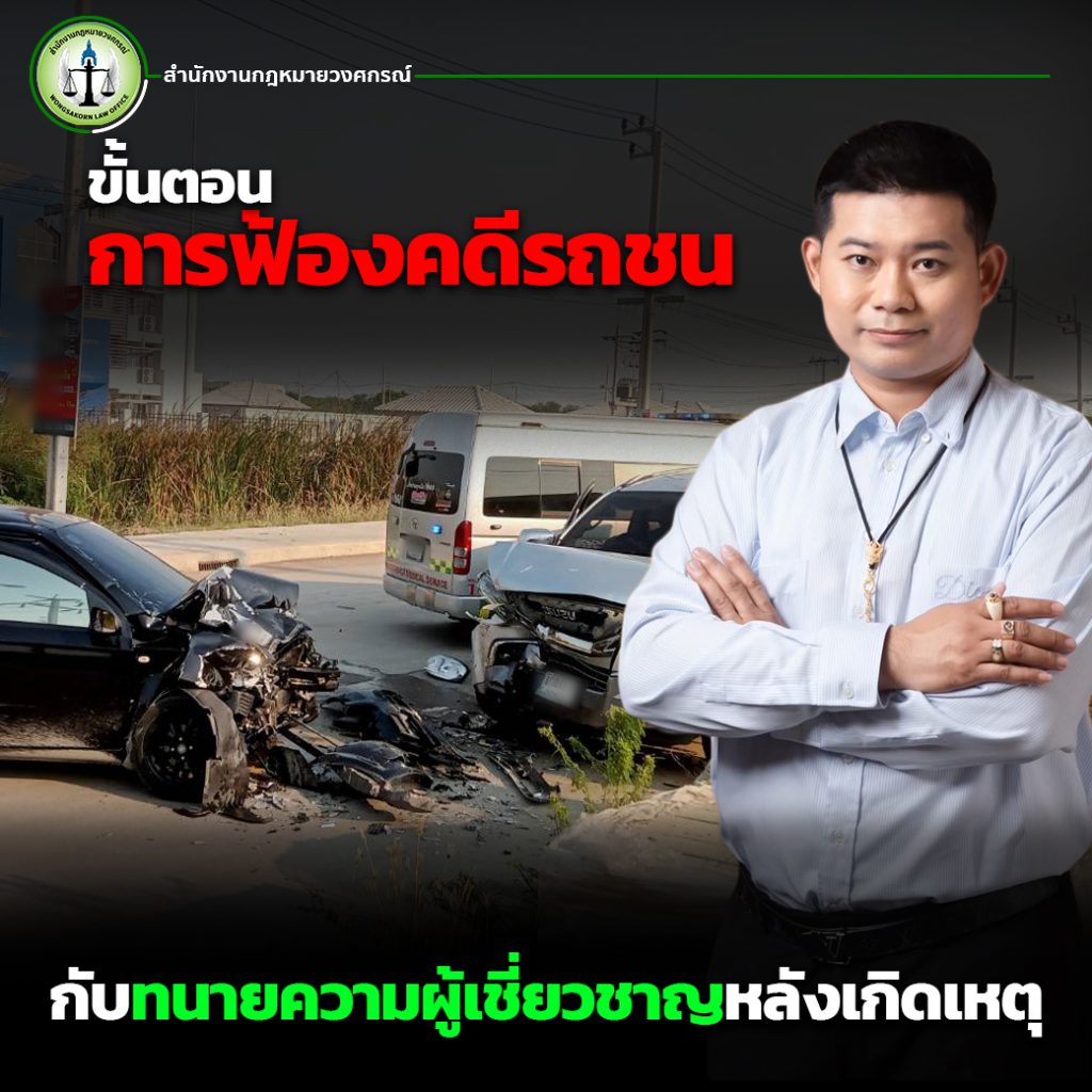 ขั้นตอน การฟ้องคดีรถชน รู้ไว้ไม่เสียหาย…เมื่อเกิดเหตุการณ์อุบัติเหตุรถชน ไม่ว่าจะเป็นการชนที่มีผู้บาดเจ็บหรือเพียงแค่ความเสียหายทางทรัพย์สิน เช่น รถยนต์ ผู้ประสบอุบัติเหตุหลายท่านคงตั้งตัวกันไม่ถูกว่าจะต้องทำอย่างไรต่อ แต่วันนี้สำนักงานกฎหมายวงศกรณ์จะพามาทำความเข้าใจในขั้นตอน การฟ้องคดีรถชนกันว่าเมื่อเรื่องมาถึงมือทนายแล้วมีขั้นตอน การฟ้องคดีรถชนเพื่อเรียกร้องความยุติธรรมและสิทธิที่ตนพึงมีอย่างไร ในบทความนี้เราจะกล่าวถึงขั้นตอน การฟ้องคดีรถชนอย่างละเอียด เพื่อให้ผู้ที่ประสบภัยหรือประสบเหตุการณ์รถชนสามารถดำเนินการตามขั้นตอนที่ถูกต้องและสามารถเป็นประโยชน์สูงสุดให้กับท่านอื่น ๆ ที่ต้องการรู้เรื่องนี้อีกด้วย