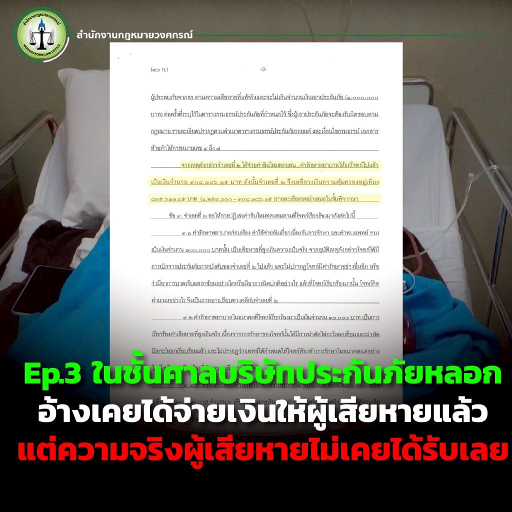 Ep.3 ในชั้นศาลบริษัทประกันภัยหลอก อ้างเคยได้จ่ายเงินให้ผู้เสียหายแล้ว แต่ความจริงผู้เสียหายไม่เคยได้รับเลย