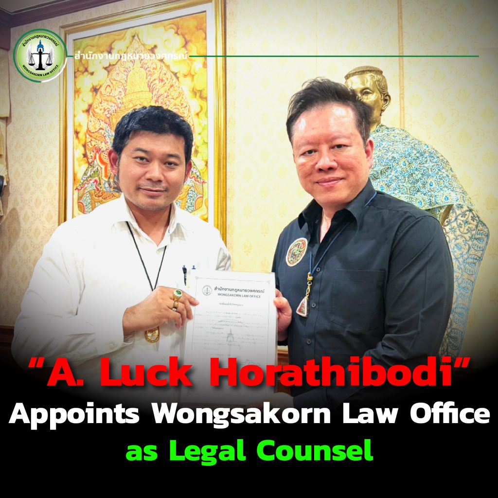 On September 26, 2025, Wongsakorn Law Office, under the leadership of Lawyer Arm – Supasit Siri, Managing Director, was honored to be appointed by A. Luck Horathibodi , a renowned astrologer in Thailand, as legal counsel to handle significant cases involving violations of rights through online platforms.
