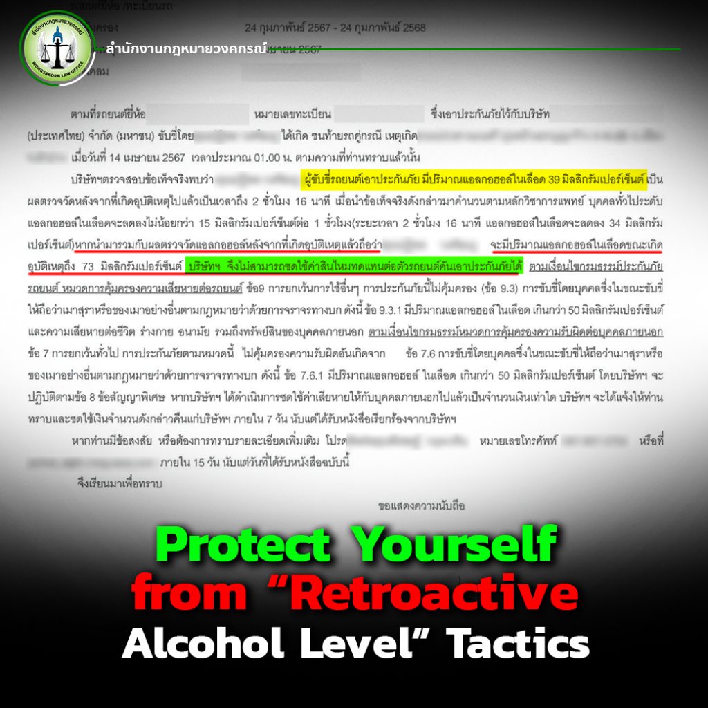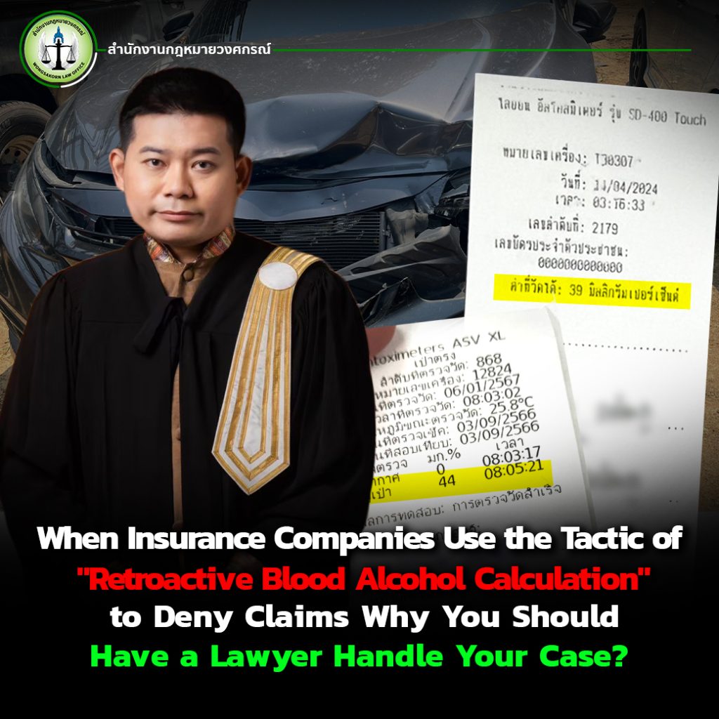 The legal team at Wongsakorn Law Office has direct experience handling insurance disputes and is ready to protect your legal rights. If you need help with a case involving “retroactive alcohol calculations,” click to contact us.