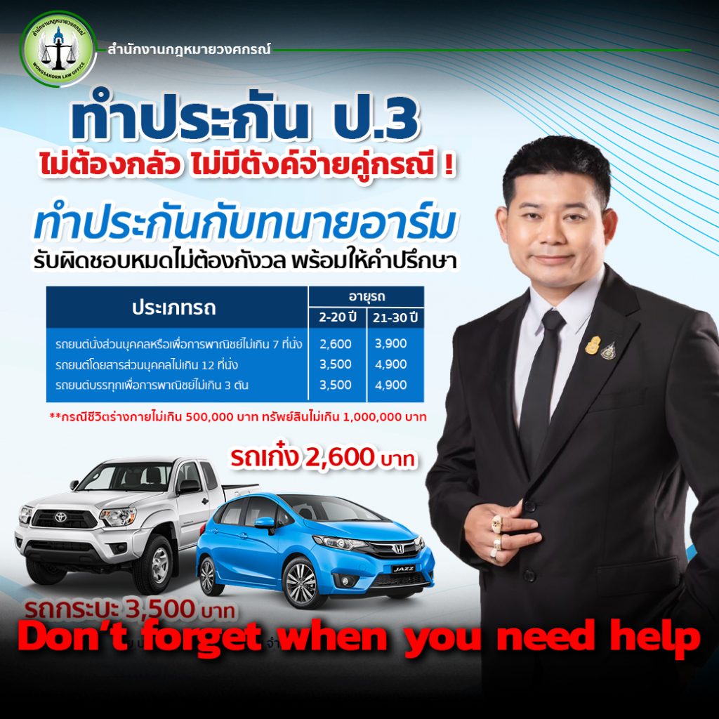 If you’re interested in consulting or learning more about insurance and legal services, feel free to contact Wongsakorn Law Office anytime. We are here to professionally take care of you.