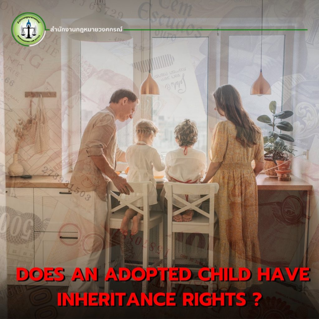 This means that once the adoption is legally registered in Thailand, the adopted child has the same legal standing as a biological child when it comes to inheritance, whether or not there is a will.