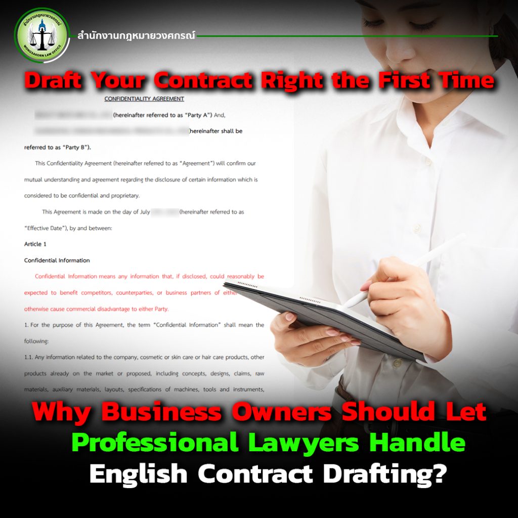 Drafting a contract is not merely translating from Thai into English; it requires understanding different legal systems. For example, Thai Civil and Commercial Law differs from English or U.S. law. A lawyer ensures that the contract aligns with both legal frameworks so that it is valid and enforceable across jurisdictions.