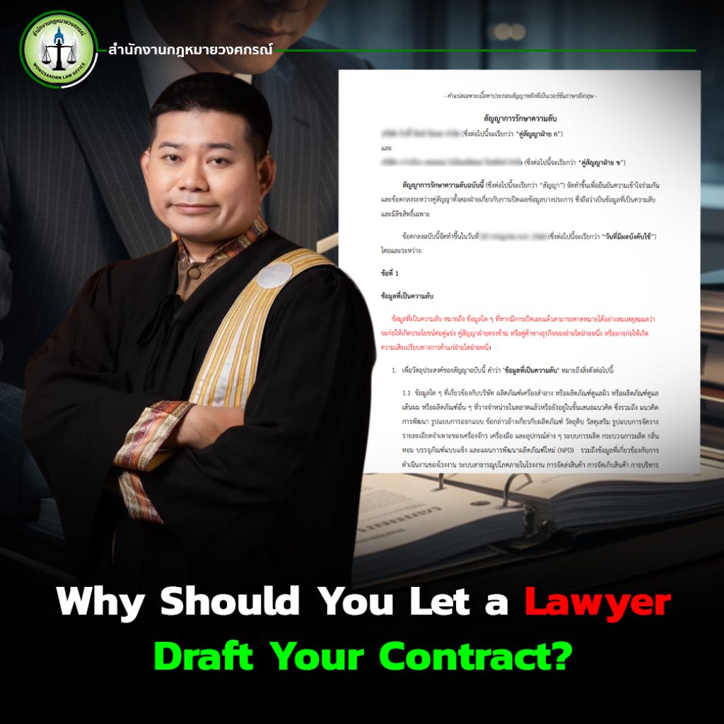 If you want your business to grow with stability, transparency, and legal confidence, let Wongsakorn Law Office draft your contract right from the start.