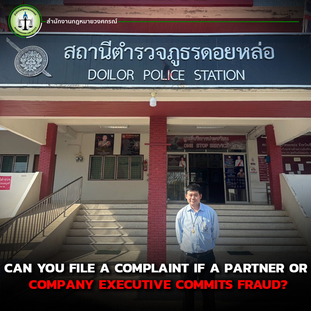 If a partner or company director is responsible for managing company assets but misuses the funds for personal gain without authorization, they may be charged with embezzlement, which carries a penalty of up to 3 years in prison or a fine of up to 60,000 baht, or both.