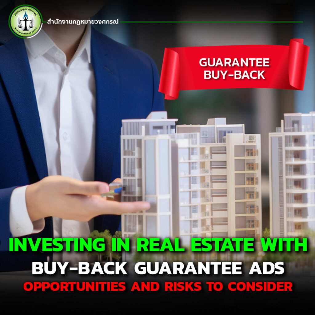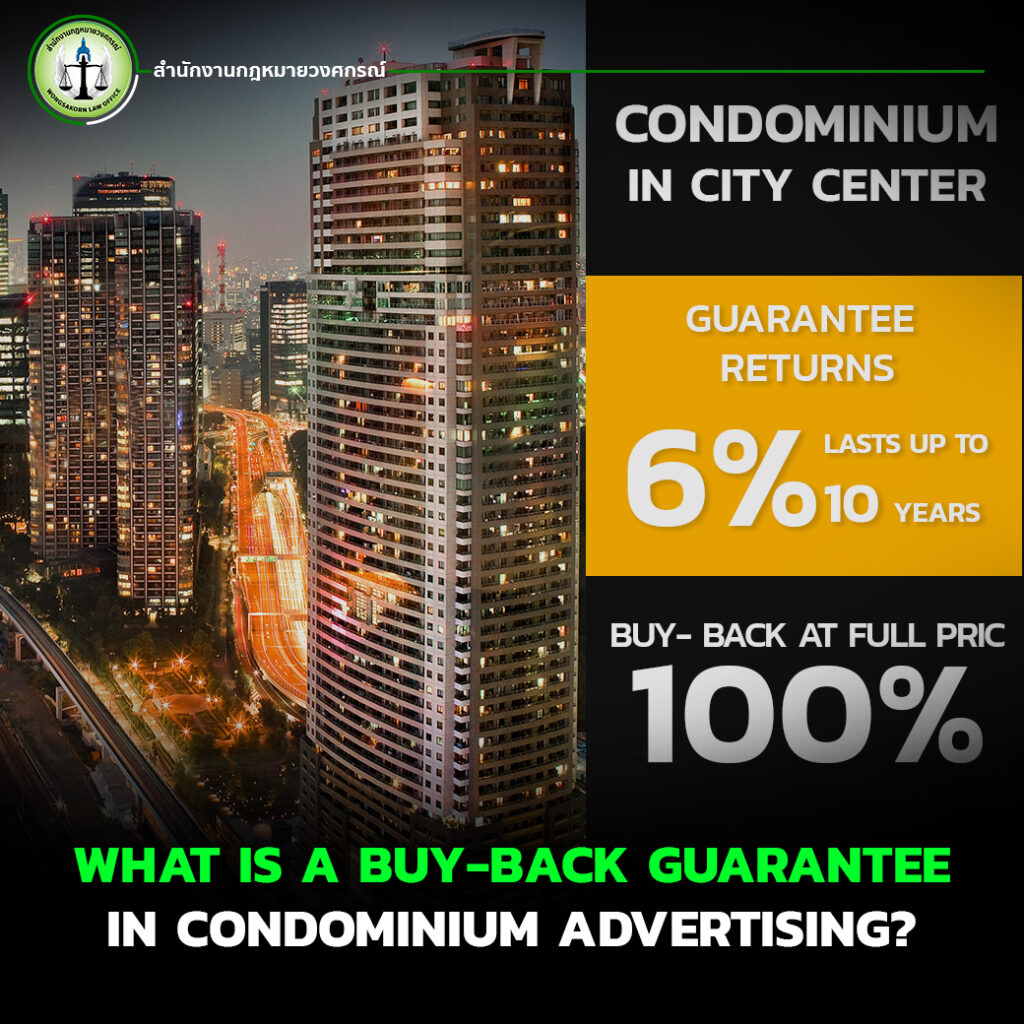The real estate market in Thailand continues to attract both local and foreign investors, particularly condominium projects that offer special promotions such as a “Buy-Back Guarantee.” This marketing strategy entices investors by promising to repurchase the property at a predetermined price after a specified period.