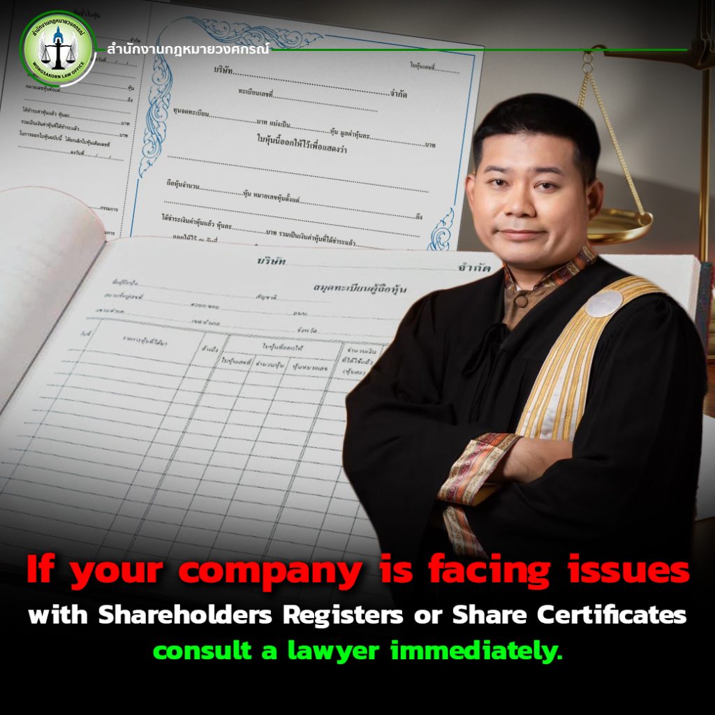 Wongsakorn Law Office has a team of lawyers specializing in business and corporate law, ready to assist with preparing or correcting registers, issuing certificates, transferring shares, and resolving shareholder disputes in compliance with the law.