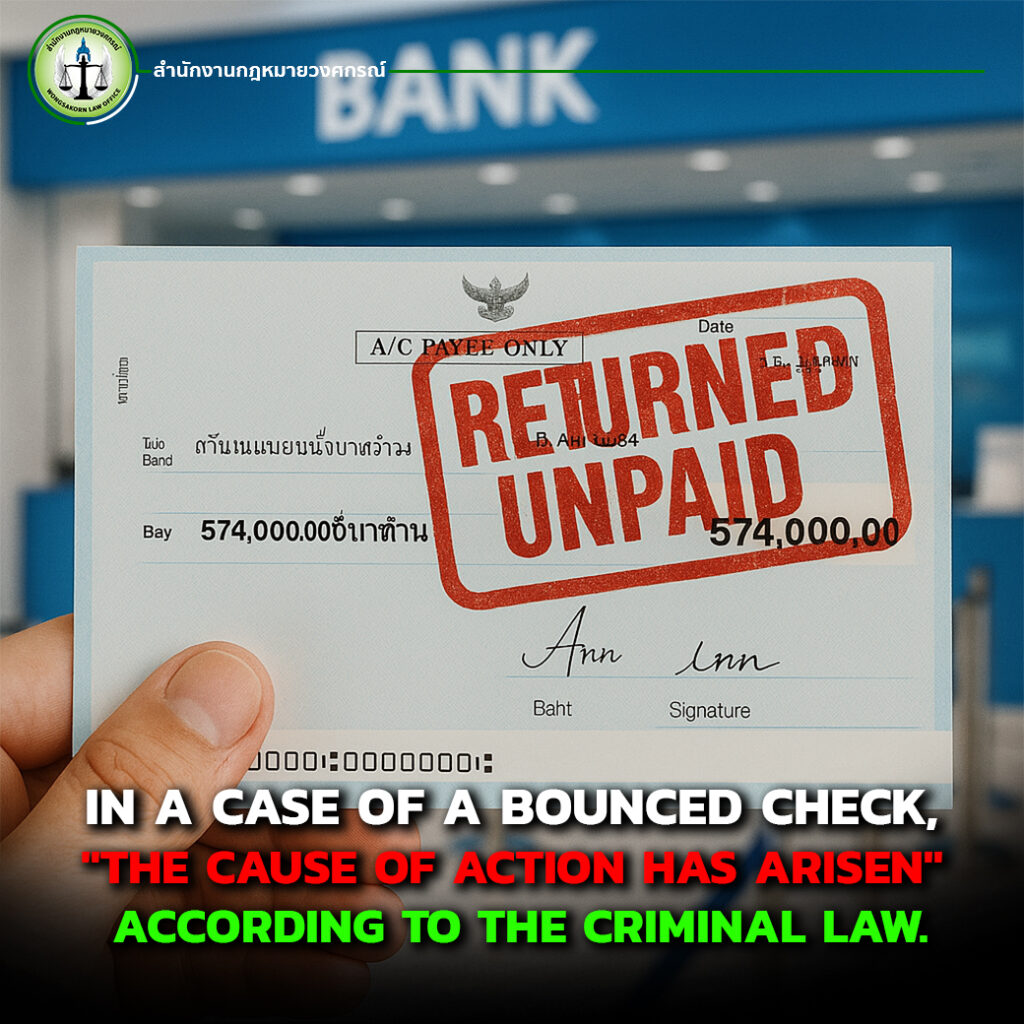 A bounced check case is a criminal offense under the Act on Offenses Arising from the Use of Checks B.E. 2534.