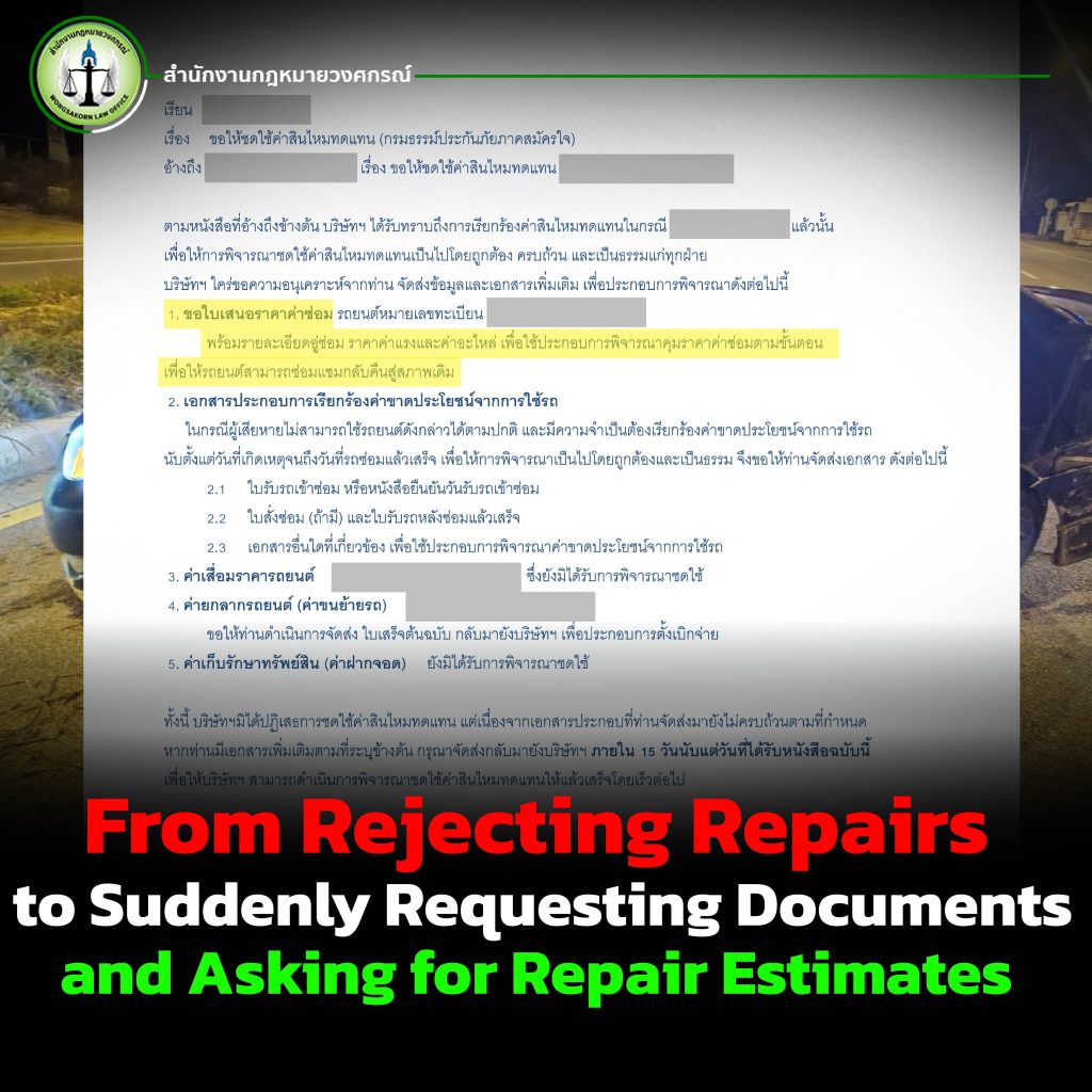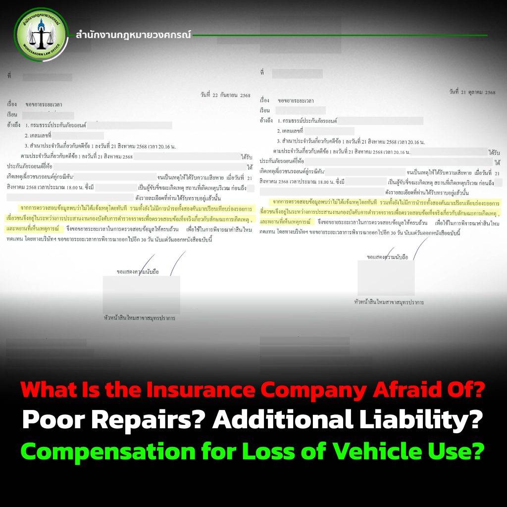 The woman, who had no legal knowledge, had no idea what to do. People around her advised her to file a complaint with the OIC (Office of Insurance Commission). However, it is widely known that the OIC often works in ways that lean toward supporting insurance companies. Starting the process this way may cause unnecessary delays and potential loss of rights.