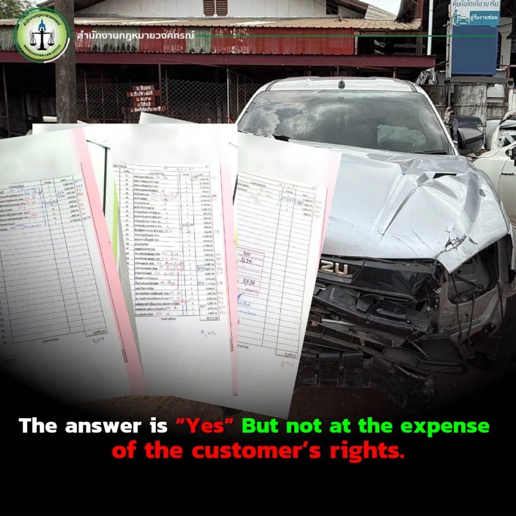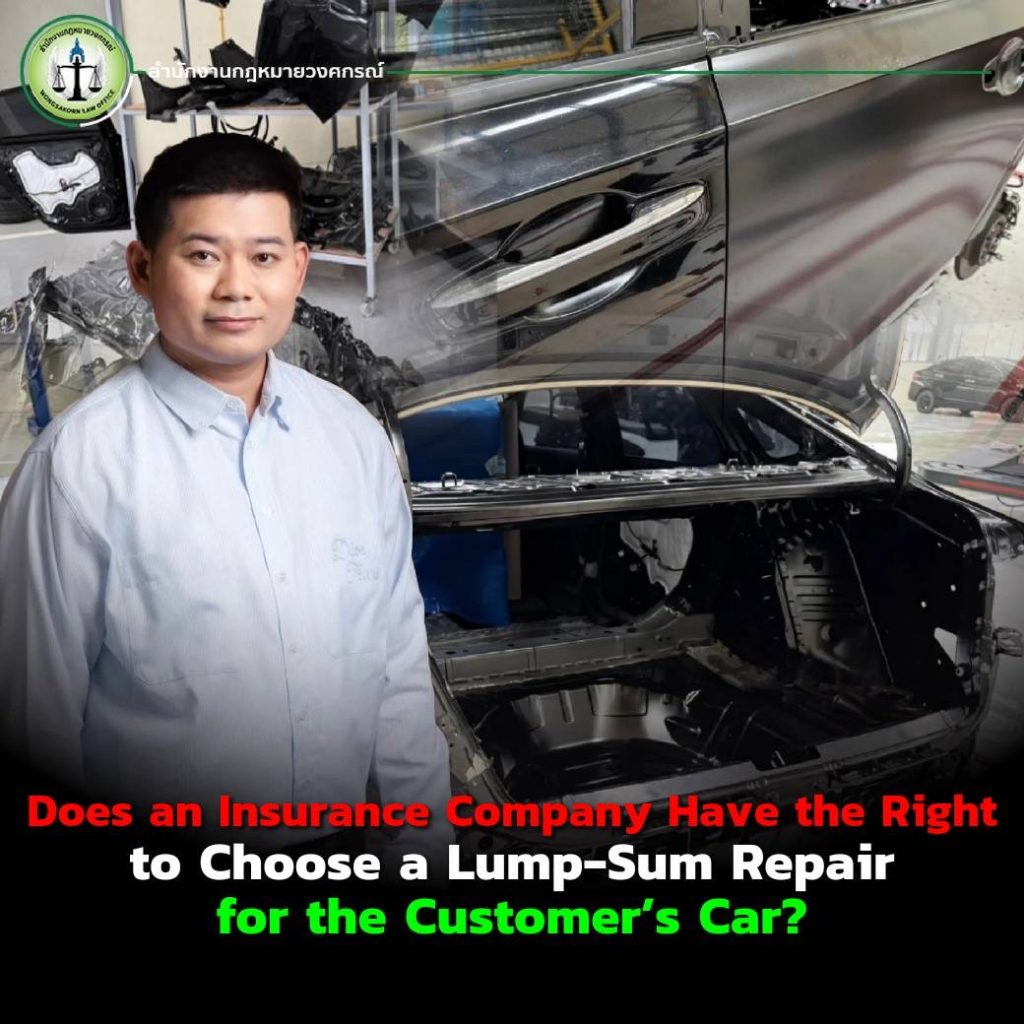 A “lump-sum repair” means the insurer estimates the total repair cost and agrees on a fixed price with a repair shop or service center often without consulting the customer. For example, if your car sustains 40,000 baht in damages, the company might strike a deal with a garage for that amount, leaving you out of the decision-making process.