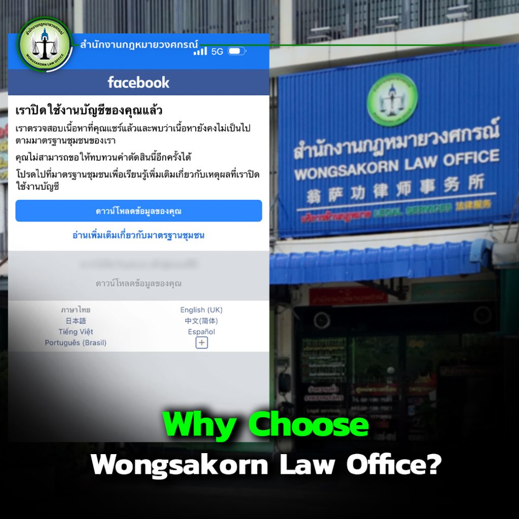 If you’ve been hacked, disabled, suspended, or failed to recover it yourself let Wongsakorn Law Office handle it professionally. We take care of every step with clear contracts and a transparent money-back guarantee.
