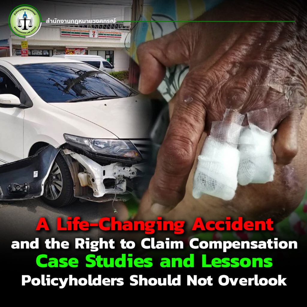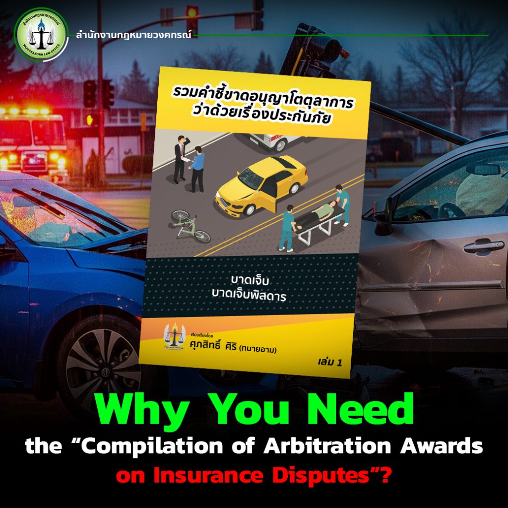 Accidents can happen at any time, without warning, and the consequences can change a life in a matter of seconds. When such incidents occur, policyholders and their families face not only physical pain but also mounting expenses, loss of income, career disruptions, and ongoing family responsibilities as if nothing had happened. The most valuable lesson for every insurance policyholder is to understand their rights and to exercise them properly according to legal procedures. The Compilation of Arbitration Awards on Insurance Disputes published by Wongsakorn Law Office is more than just a collection of case studies; it is a practical guide showing what steps victims should take to protect their rights when disputes arise.