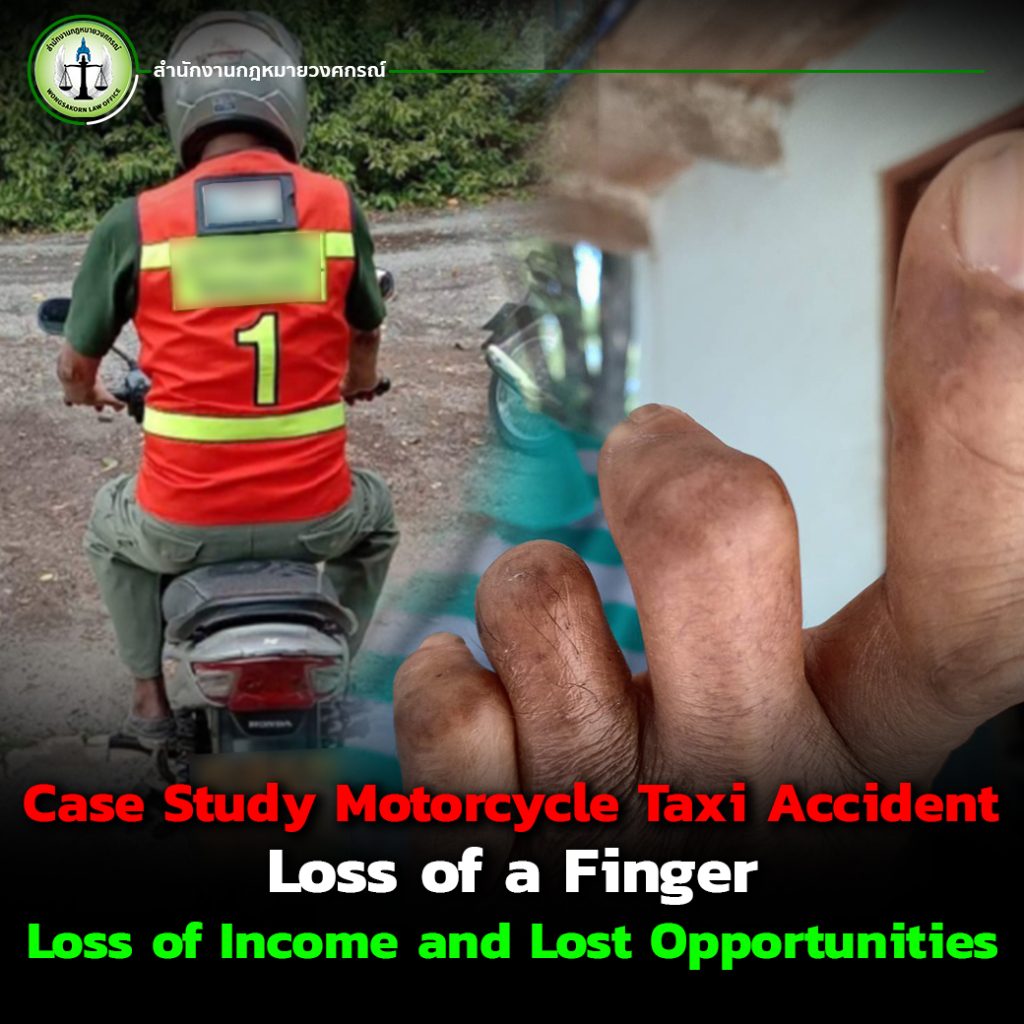 In this case, the victim was a motorcycle taxi driver, a profession that requires full physical capability. Following a serious accident, he lost two joints of his left ring finger. He underwent multiple surgeries and had to stop working for several months, losing the income that supported his family. When he recovered, he sought compensation from his insurer under the terms of his policy, only to face an obstacle: the insurance company claimed he had already settled in a criminal case, which meant he could not claim certain portions of compensation. Without legal knowledge, many policyholders might accept such arguments without realizing they have given up part of their rights, nor knowing how to recover them. This is why having an experienced lawyer to handle the case is crucial to ensure you get what you are entitled to under the law and to protect your rights in full.