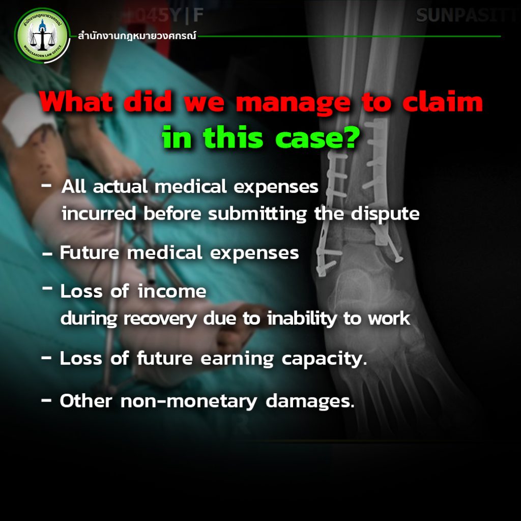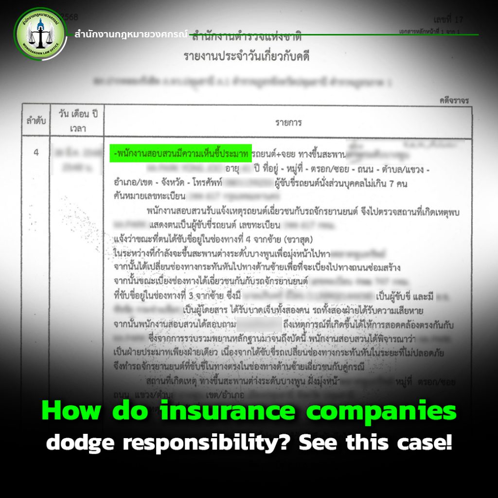 Many people believe that if they have insurance, they will automatically receive compensation without any issues. But in reality, it’s not that simple — especially when the incident is so severe that it results in a broken leg that requires metal implants . The medical costs can reach hundreds of thousands of baht, plus many other related expenses, yet insurance companies still find ways to deny or minimize the payout by all possible means.
