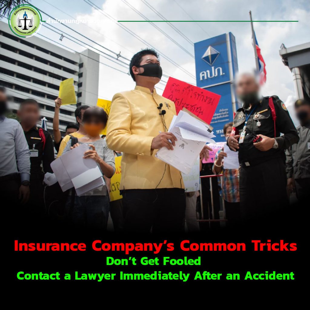 Today, Wongsakorn Law Office brings you a checklist of the most common tricks insurance companies use, so that victims don’t get deceived. Whenever an accident occurs, you should contact a lawyer immediately without hesitation because seeking legal counsel after an accident will never put you at a disadvantage.