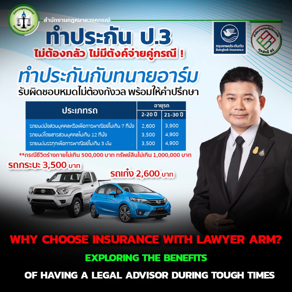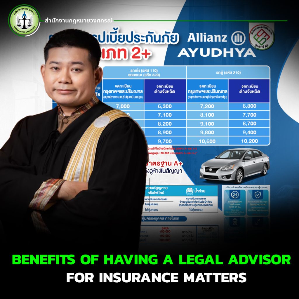 Wongsakorn Law Office is a legal team specializing in insurance cases and compensation claims for car accidents in particular. We fully understand the relevant laws, the evidence needed, and how to negotiate with insurance companies from all perspectives.