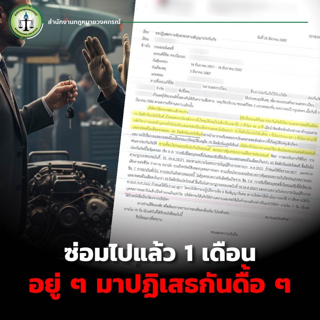 กลับคำ!!! ปฏิเสธการจ่ายค่าสินไหม ทั้งที่ตอนแรกประกันบอกรับผิดชอบ และลูกความได้เอารถเข้าซ่อมระยะเวลาเป็นเดือน