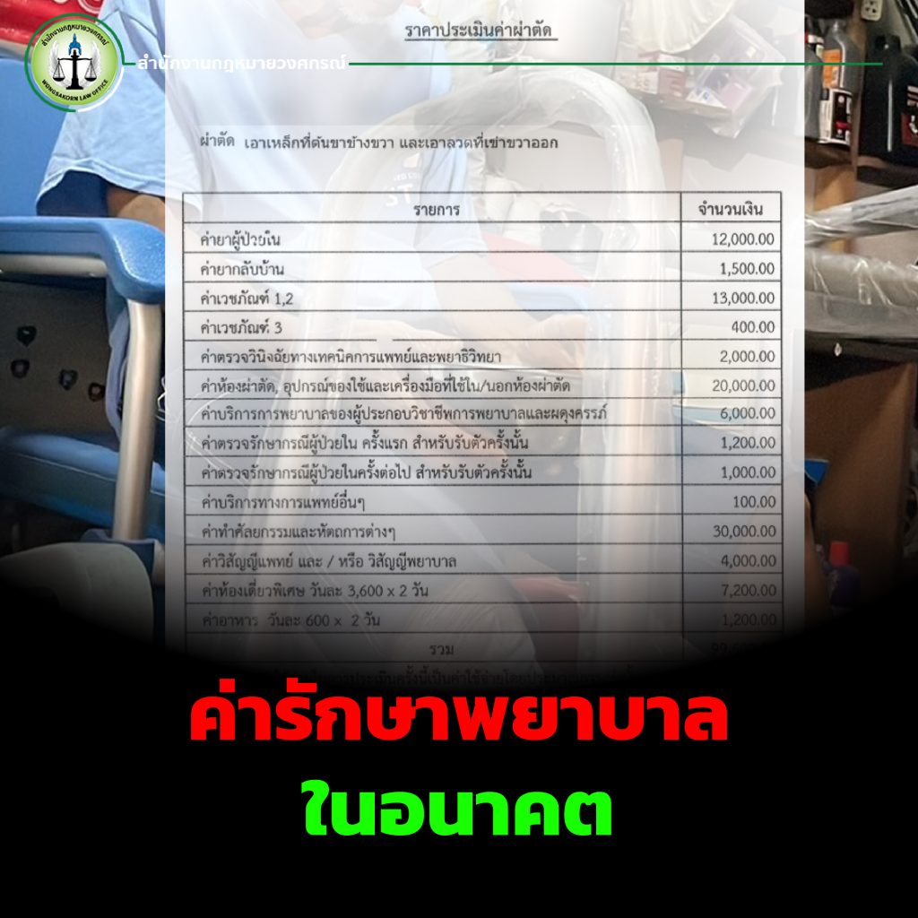 กล่าวอ้าง 2. ค่ารักษาพยาบาลในอนาคต จำนวน 150,000 บาท อาการบาดเจ็บของผู้เสนอ