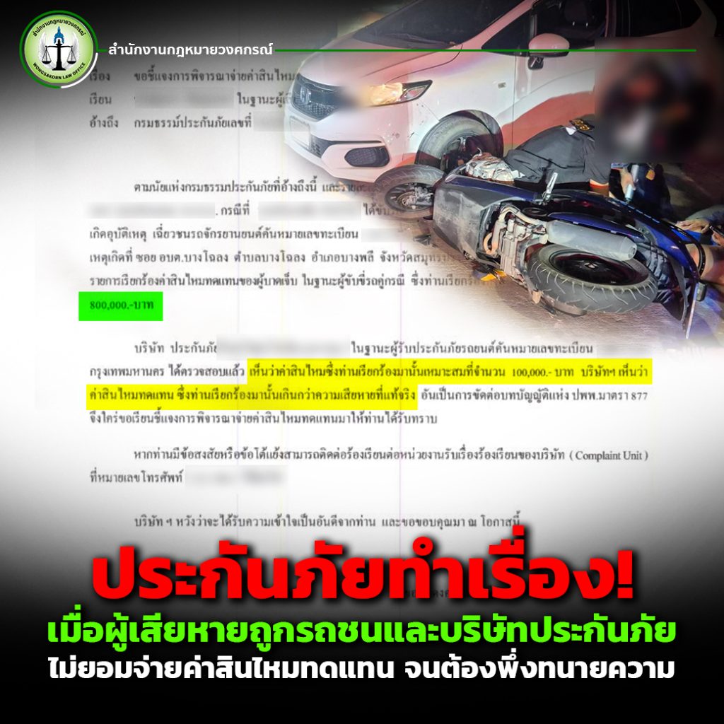 ประกันภัยทำเรื่อง! เมื่อผู้เสียหายถูกรถชนและบริษัทประกันภัยไม่ยอมจ่ายค่าสินไหมทดแทน จนต้องพึ่งทนายความ