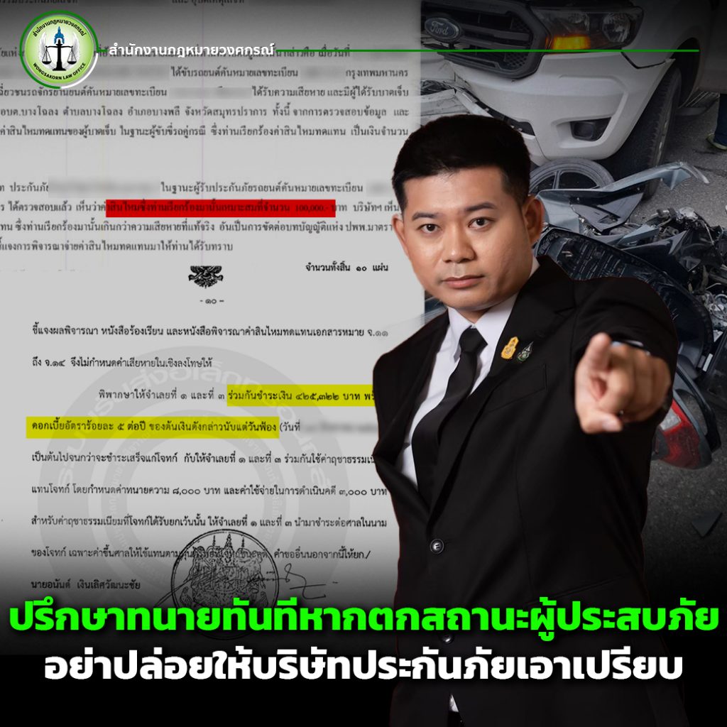 “ทนายความ” เข้ามาช่วยจัดการจะเปลี่ยนสถานะจาก “ผู้ประสบภัยที่รอความเมตตา” เป็น “ผู้เสียหายที่ใช้สิทธิ์ตามกฎหมาย” ทันที