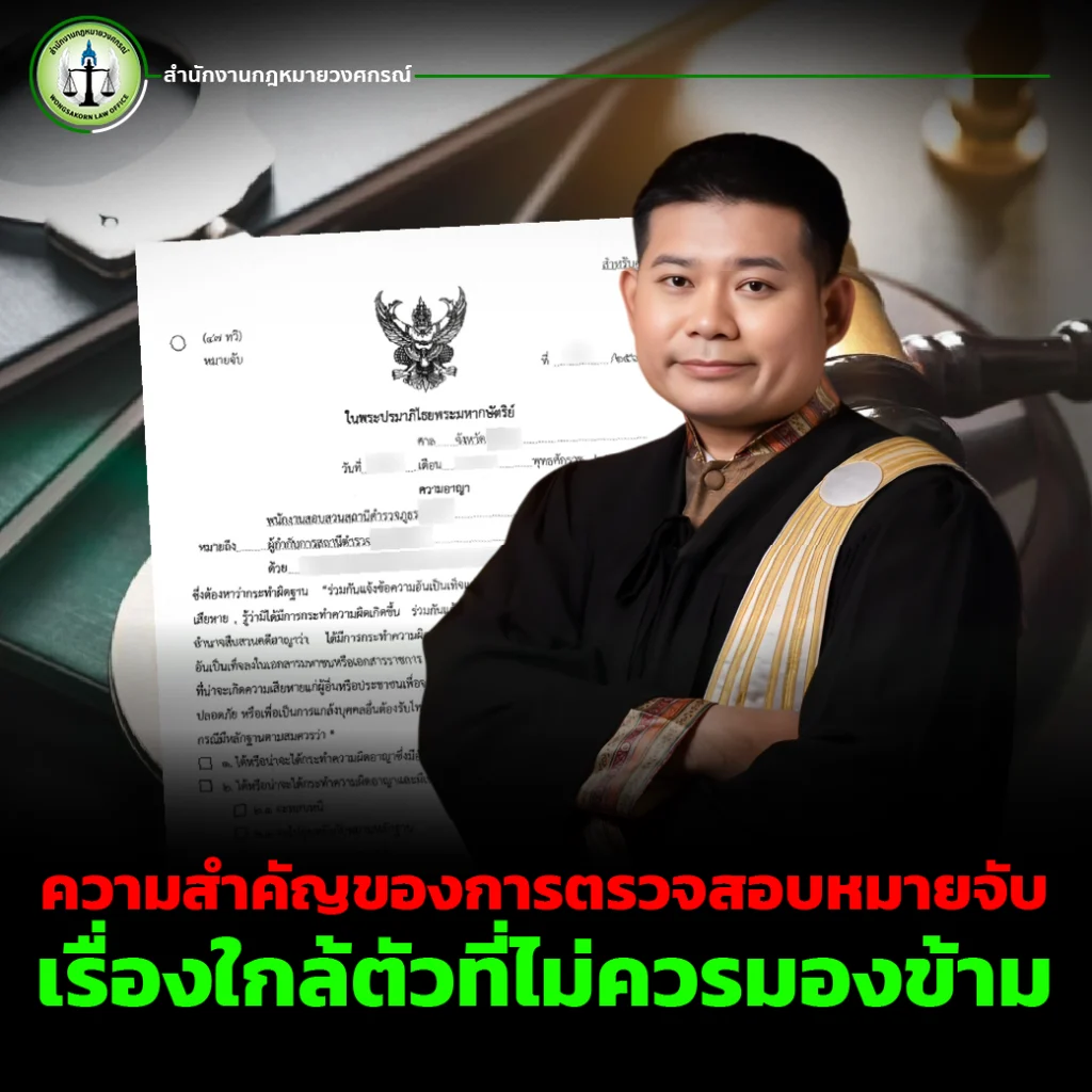 สำนักงานกฎหมายวงศกรณ์พร้อมให้คำปรึกษาและดำเนินการตรวจสอบหมายจับอย่างถูกต้องตามกฎหมาย เพื่อให้คุณสามารถเดินทางเข้าประเทศไทยได้อย่างมั่นใจ ปลอดภัย และไม่ต้องเผชิญกับปัญหาที่ไม่คาดคิด