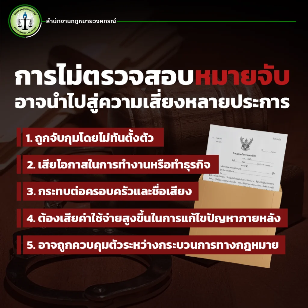 คดีหรือหมายจับอาจส่งผลต่อการต่อวีซ่า การขอใบอนุญาตทำงาน หรือการพำนักระยะยาว การตรวจสอบช่วยป้องกันปัญหาในอนาคต