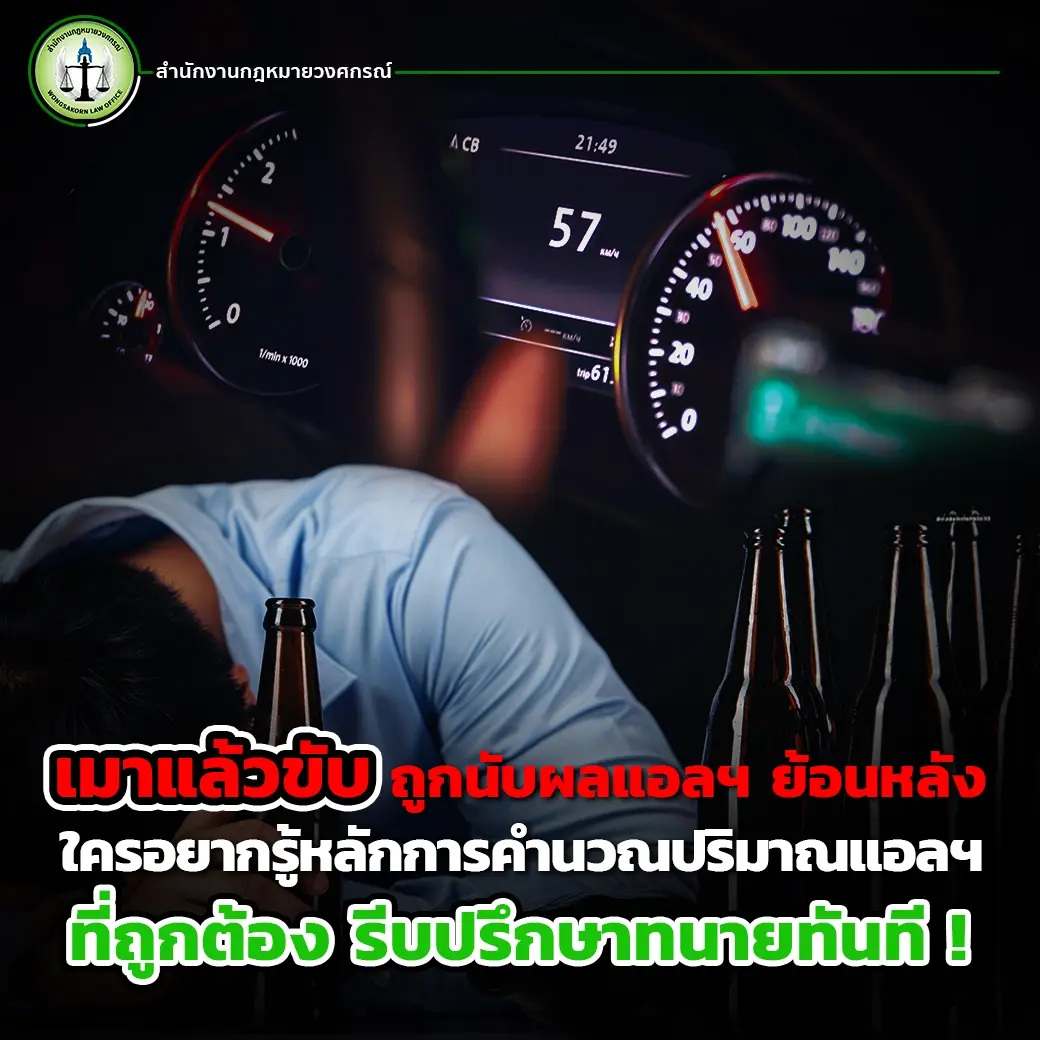 เมาแล้วขับ ถูกนับผลแอลฯ ย้อนหลัง ใครอยากรู้หลักการคำนวณปริมาณแอลฯ ที่ถูกต้อง รีบปรึกษาทนายทันที !