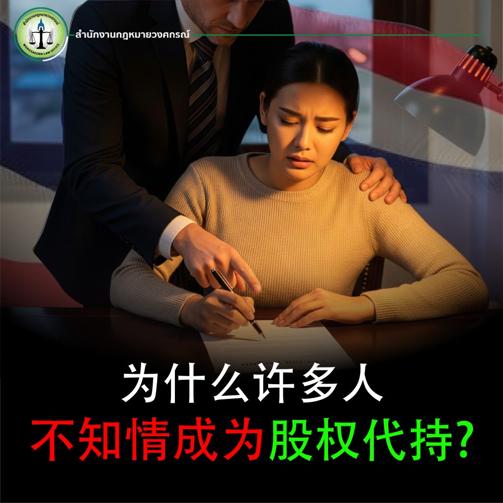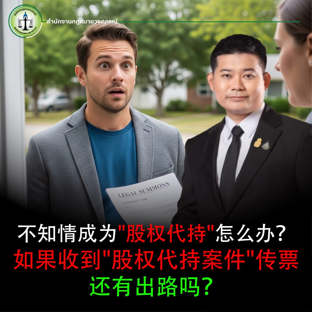在泰国商业世界中,“股权代持”(Nominee) 词经常被提及,尤其是在泰国人代外国人持股的情况下。根据泰国法律,这属于违法行为,被视为规避《外国人经营法》。然而,许多人在不知情的情况下成为股权代持,例如:被要求替朋友或亲戚代持股份、接受少量报酬、甚至在没有完全理解法律含义的情况下签署文件。