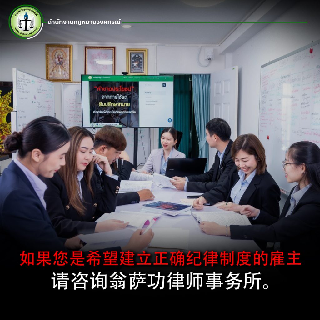 泰国 Wongsakorn 师事务所 为雇主与员工提供法律咨询、调解和诉讼服务,帮助妥善处理警告书、雇佣合同、劳动争议等,维护企业运作与员工权益。