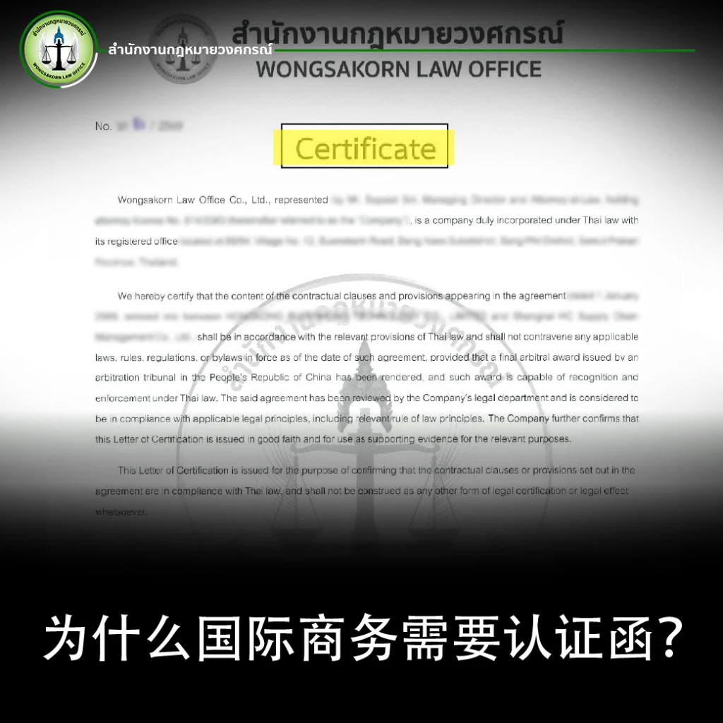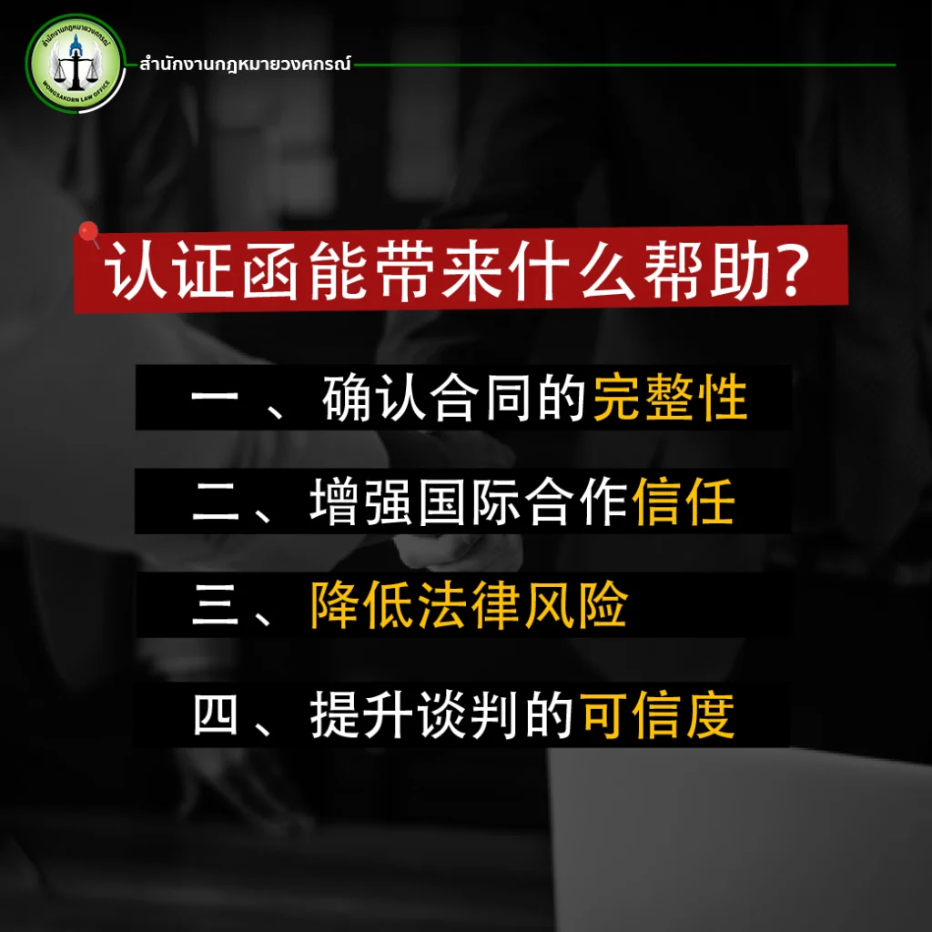 在这些情况下,认证函可以有效减少疑虑。当泰国律师事务所对合同进行审核并出具认证函后,将大大增强各方的信心。