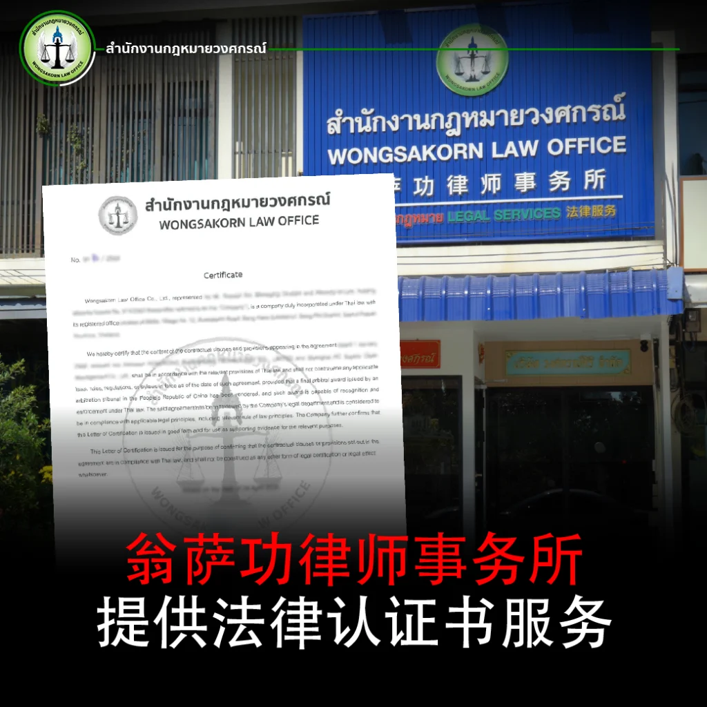 对于企业经营者、投资者以及从事国际业务的公司,翁萨功律师事务所提供合同起草、合同审查以及出具法律认证书(Certification Letter)等专业服务,以确认合同符合泰国法律的要求。