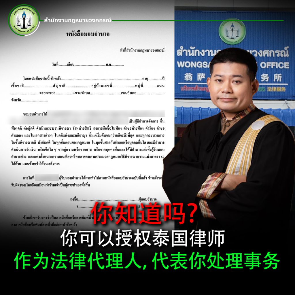 你知道吗?你可以授权泰国律师作为法律代理人,代表你处理事务