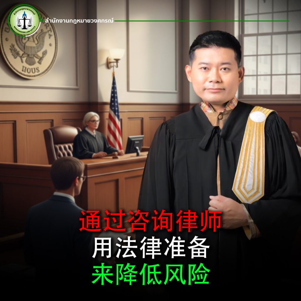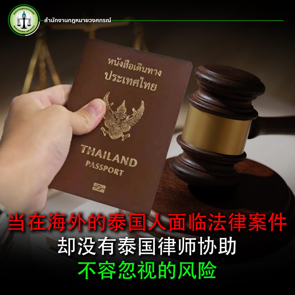 翁萨功律师事务所 拥有专门处理国际案件的律师团队,为海外泰国人提供全面的法律咨询服务。无论您身处哪个国家,只要遇到法律问题,我们都将竭力确保您获得最大的公平与正义。我们 拥有丰富的经验为海外泰国人办理和诉讼案件,涵盖亚洲、欧洲等多个地区。凭借对泰国与外国法律体系的双重理解,我们能成为您案件的桥梁,提高辩护的效率与成功率。如果您是海外泰国人并需要法律咨询,请点击 >>联系我们<<