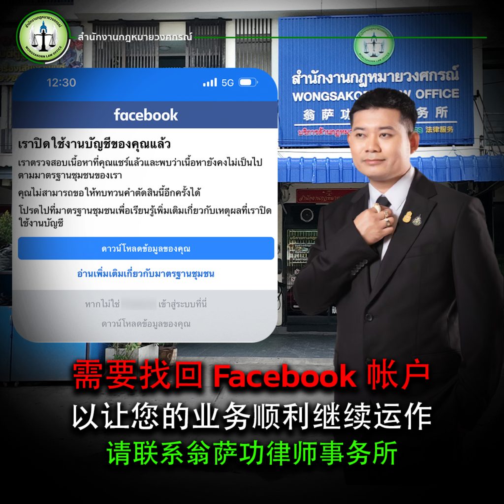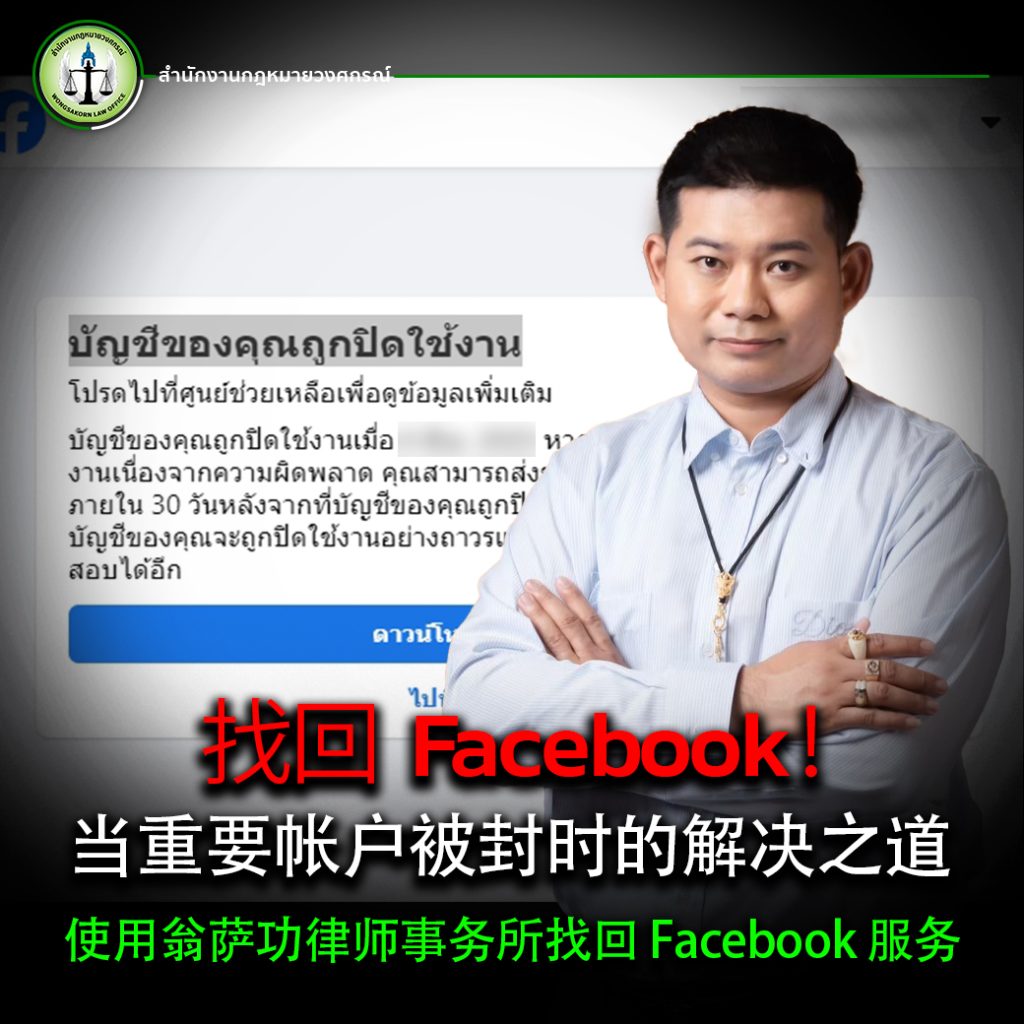 需要找回Facebook 帐户以让您的业务能够继续运作,请联系翁萨功律师事务所。