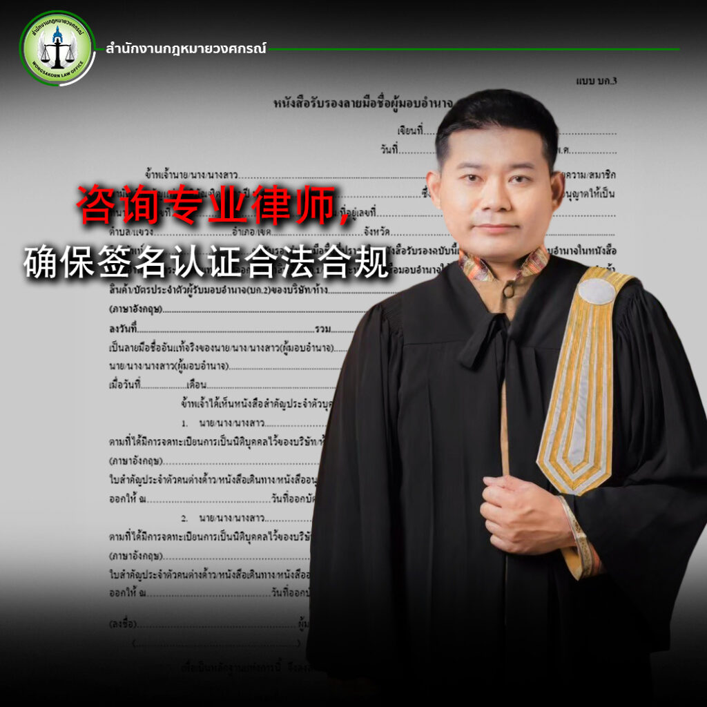 - 持有执业证书的律师——获得泰国律师执业资格的律师可对授权文件进行签名认证。