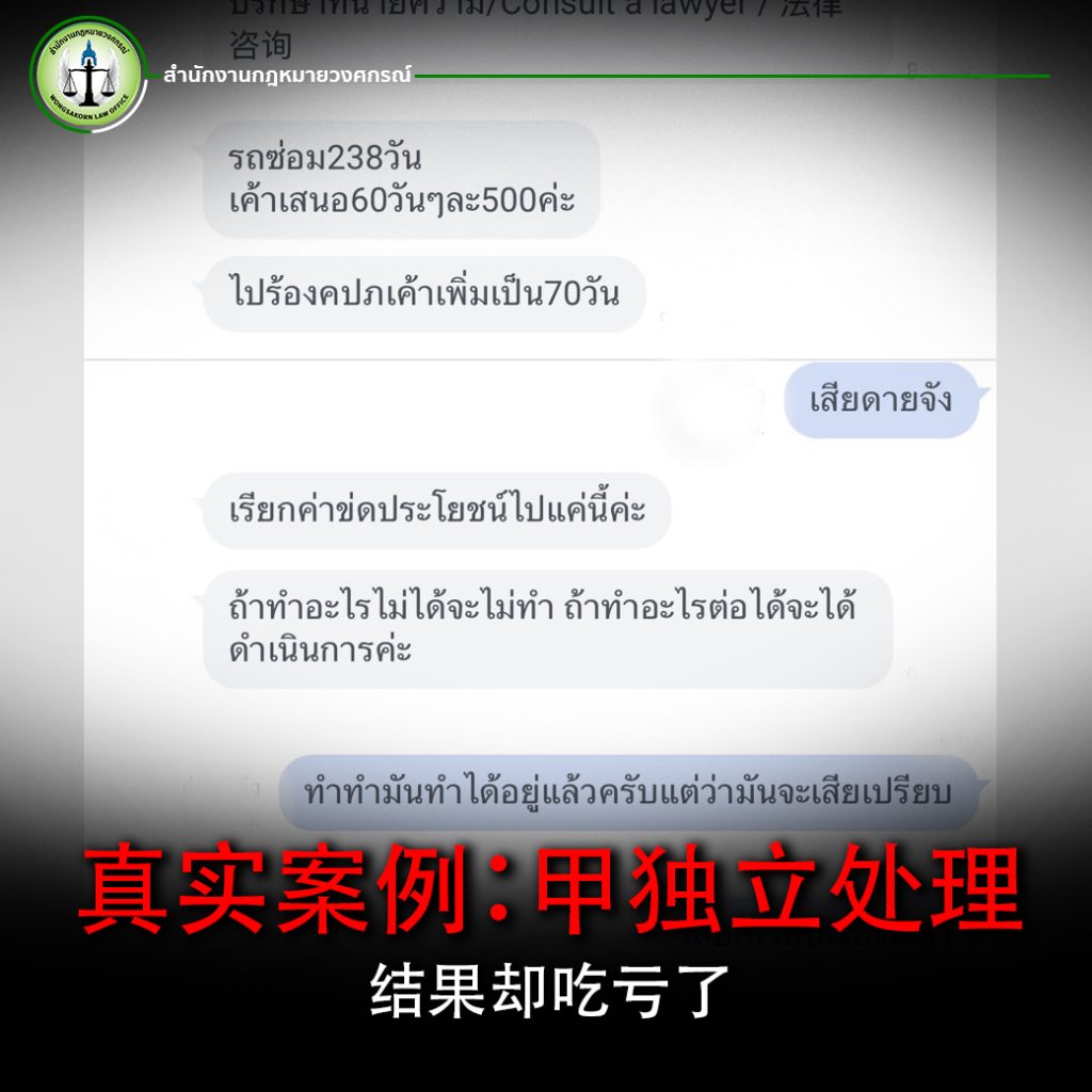在感受到不公之后,甲决定联系Wongsakorn 律师事务所,咨询保险方面专家 Arm 律师。然而他却发现,一切都太迟了。因为他之前自行前往保险公司调解,没有律师或法律顾问陪同,从一开始就处于不利地位。