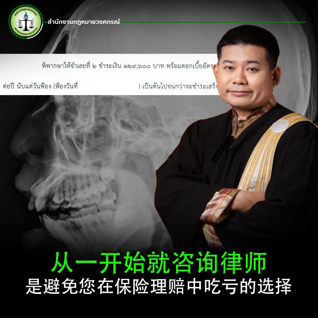 与保险公司最初提出的100,000泰铢相比,差距巨大。这证明如果没有律师协助,受害者可能被迫接受不公的赔偿,甚至无法获得合理补偿。